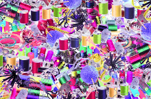 Tape measures, threads, scissors, needles, thimbles and bobbins for the reverse of